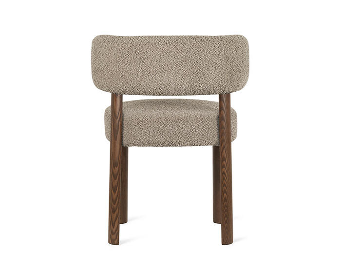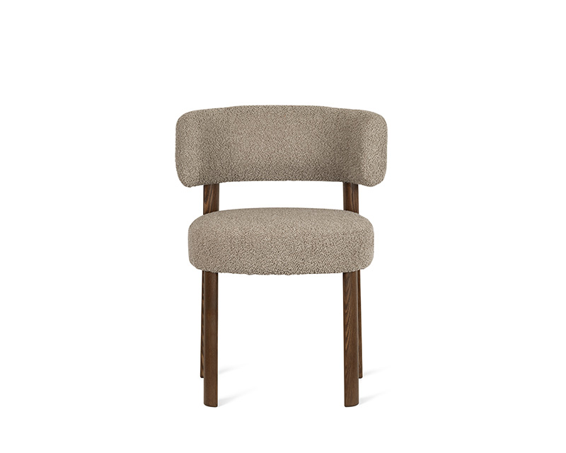 The Glen chair features a minimalist design. Lines and volumes provide it with a bold character and create a visual balance between solidity and lightness. The pure, geometric shape gives rise to a curved seat and backrest, the distinguishing feature of the design. Its wrap-around shape adds a harmonious look to the chair and provides ergonomic support, adapting to the natural posture of the body.