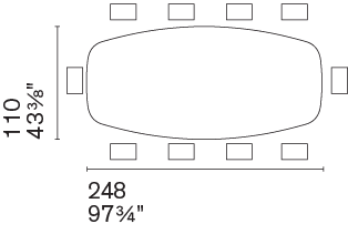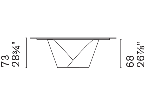 A prominent table, designed to be the centrepiece in the contemporary living space. Calla features a base that resembles a flower – robust yet light, it consists of two metal blades which, as petals do, interlock, creating a chalice shape that opens out upwards, alluding to vitality and rebirth.