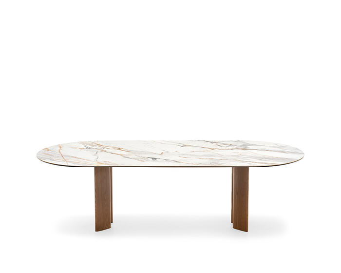 A table with a bold yet sober and elegant presence, which can be easily paired with any of the chairs in the Calligaris collection.