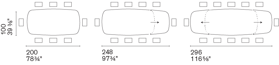 W 200(248)(296) x D 100 x H 77(68.5) cm.