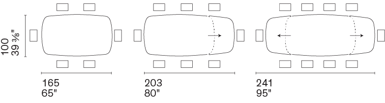 W 165(203)(241) x D 100 x H 77(68.5) cm.