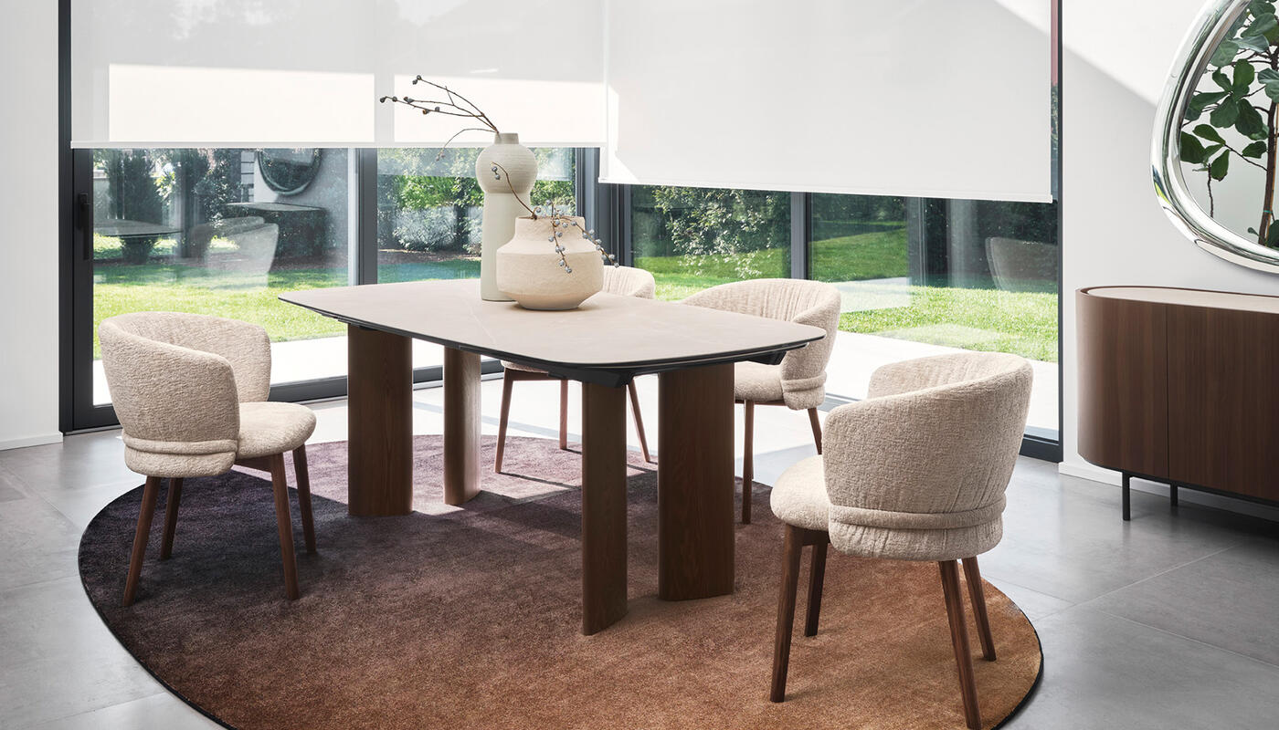 A table with a bold yet sober and elegant presence, which can be easily paired with any of the chairs in the Calligaris collection.