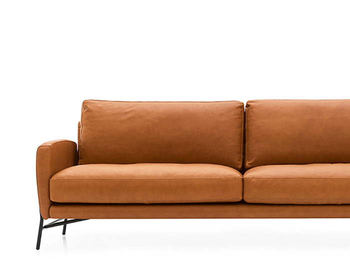 Thin armrests are softened by small cushions, adding comfort without interrupting the sofa’s clean profile. Available in a wide range of configurations—including fixed versions, central elements in multiple sizes, chaise longue, ottoman, and open-end—Le Marais offers generous freedom of composition, adapting naturally to both classic interiors and contemporary living spaces.