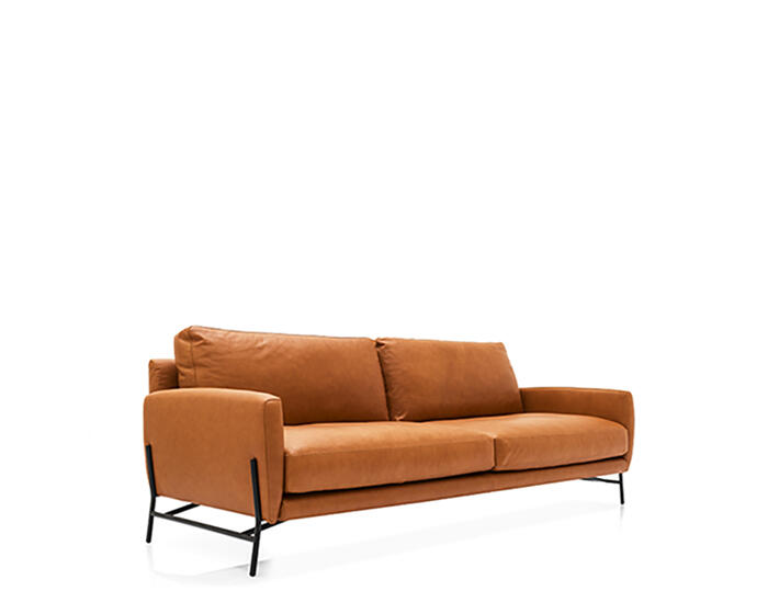 Le Marais is a sofa defined by fluid, feminine lines and a sense of effortless movement. Slender metal feet lift the structure lightly from the floor, extending upward to support seats and backrests distinguished by their soft, elastic cushioning. The result is a design that feels dynamic yet composed, refined without formality.
