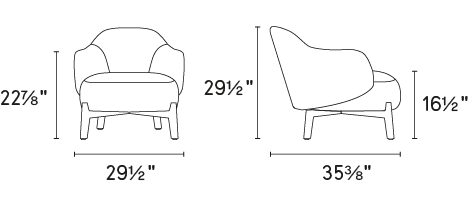 Holly Fab translates the soft elegance of the Holly family into a more generous, relaxed form. Inspired by 1950s design, the armchair is defined by a wrap-around backrest that flows seamlessly into the armrests, creating an open yet embracing silhouette. Expanded proportions enhance its leisurely character, while the subtly raised front foot adds a refined architectural detail. Designed for unhurried moments, Holly Fab balances comfort with a quietly expressive presence.