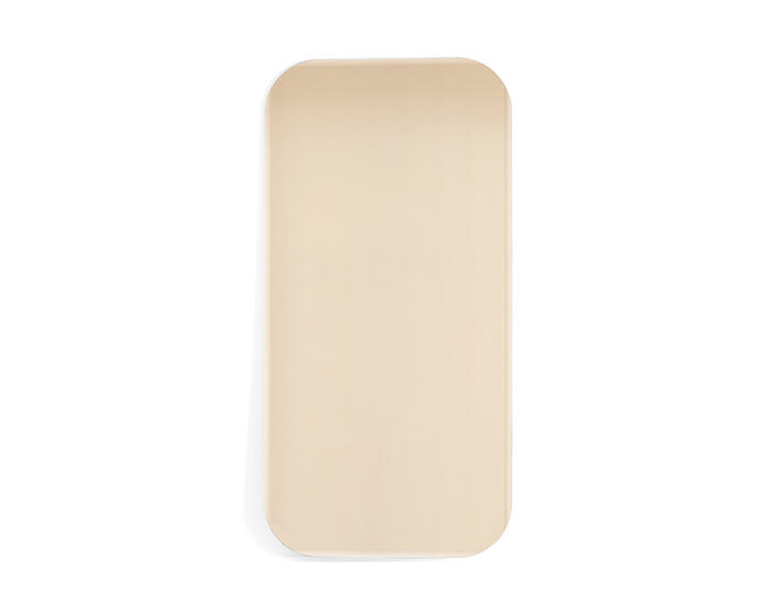 The Bevel large rectangular mirror is designed to highlight the refined processing of bronzed mirror glass. Its softly contoured outline is shaped by precisely executed bevels that follow the perimeter, occasionally interrupted to accentuate the mirror’s gentle curves.