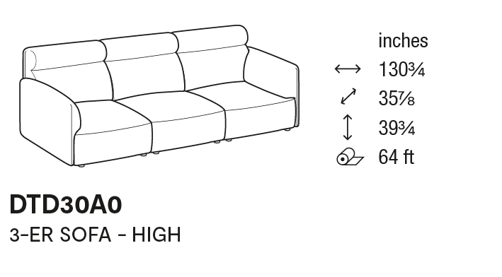 Linear configurations can be complemented by an end chaise longue, while the sloping component introduces a contemporary inflection to the design. Balanced in proportion and generous in presence, Axis High combines adaptability with a reassuring, architectural comfort.