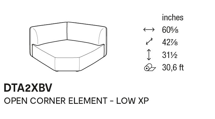- The corner base connects standard-depth elements with XP-depth elements.