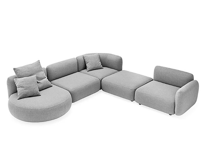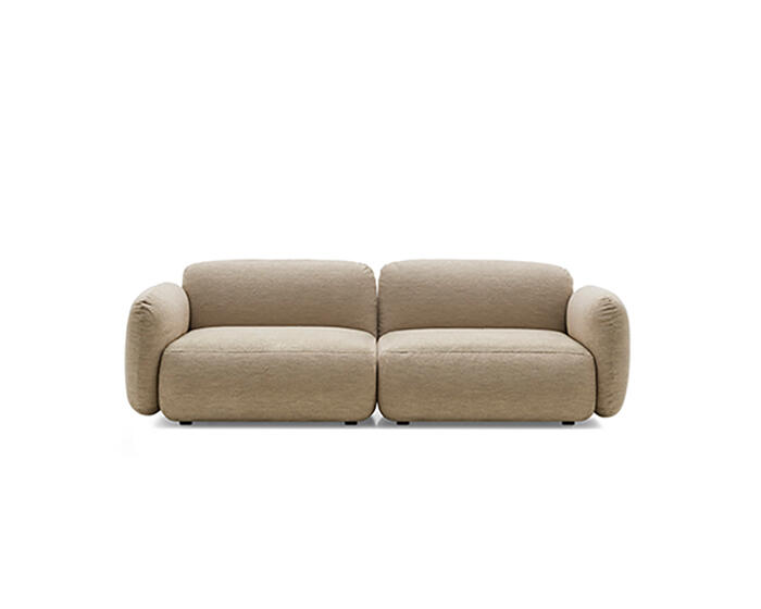 Ginza is a modular sofa system shaped by softness and movement. Inspired by the rounded, organic forms of 1970s design, its padded volumes create a landscape of gentle curves and inviting depth. Each element shares the same flowing language, allowing compositions to feel cohesive even as they change in scale and direction.