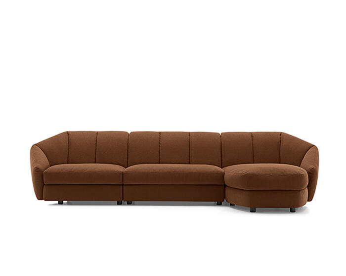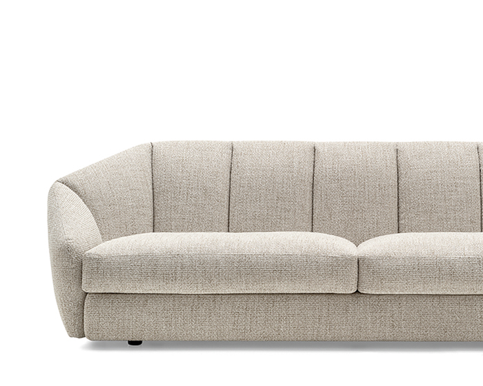 Jill reinterprets the spirit of the 1970s through a contemporary lens, shaping comfort into a single, continuous gesture. Soft padding gives volume to the backrest and armrests, which flow seamlessly into one another to create an enveloping, cohesive form. The result is a sofa that feels warm, relaxed, and intuitively welcoming.